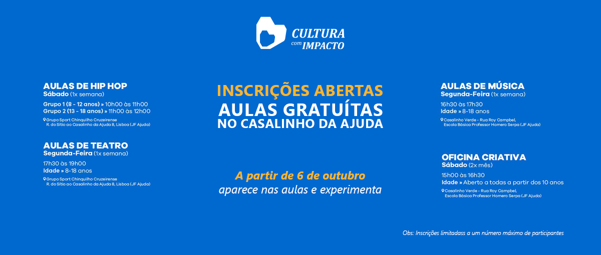 Aulas gratuítas no Casalinho da Ajuda - contacto